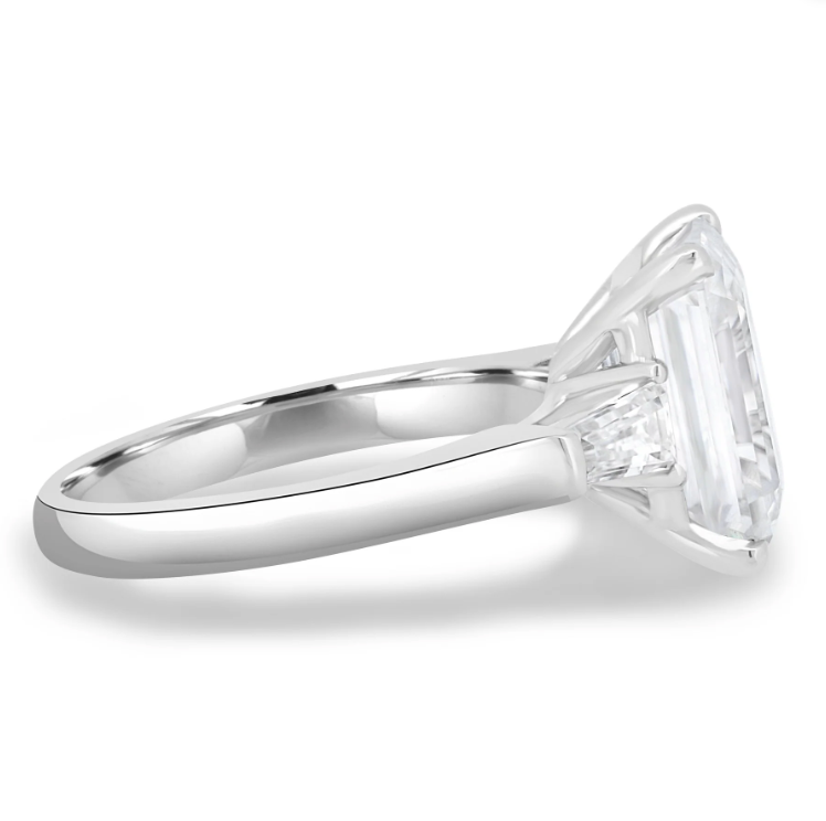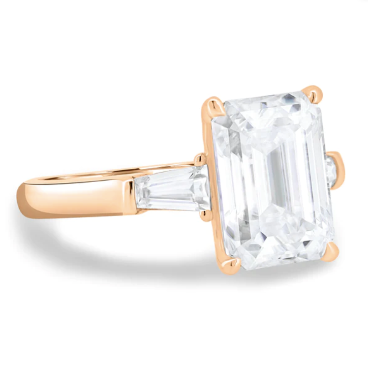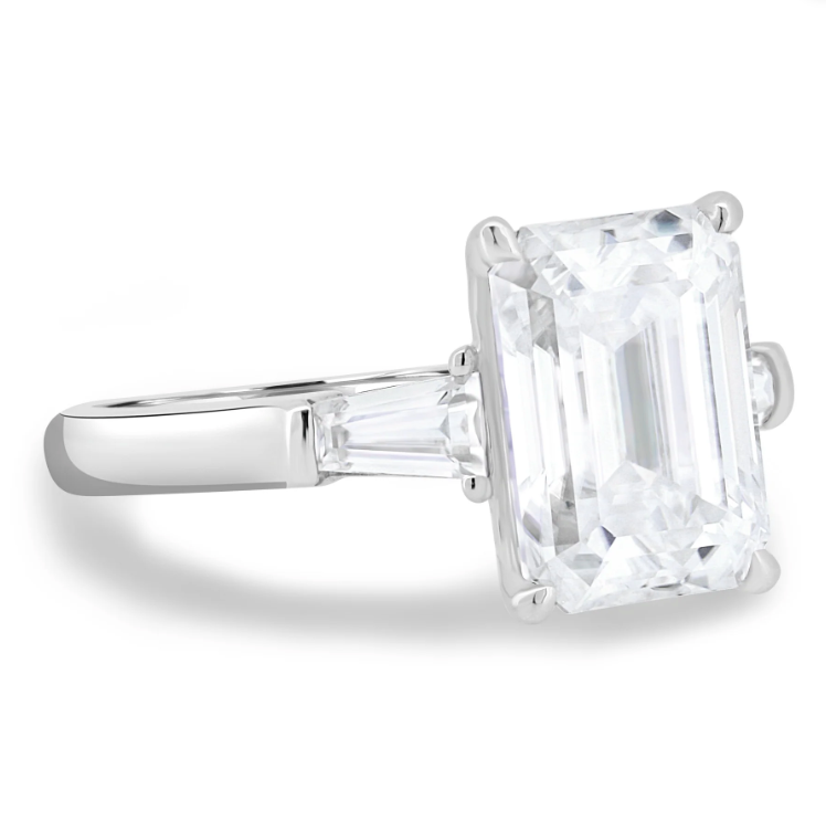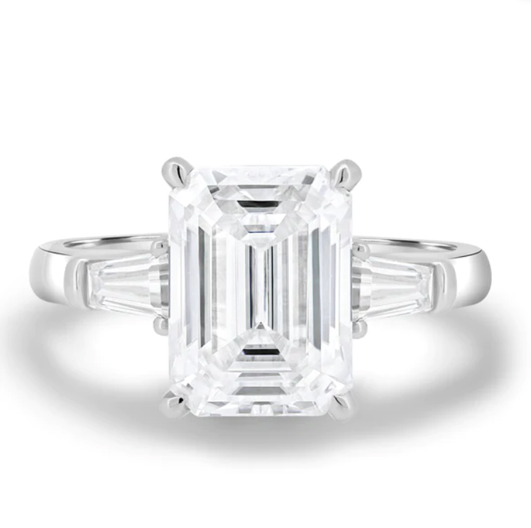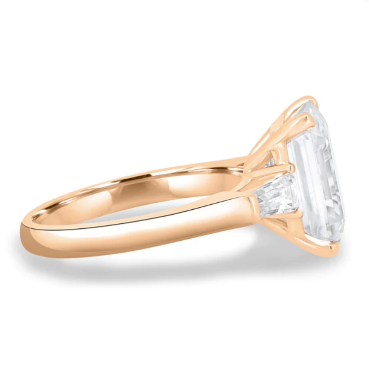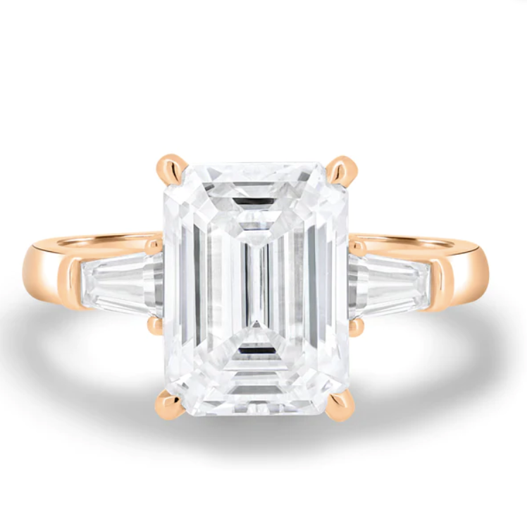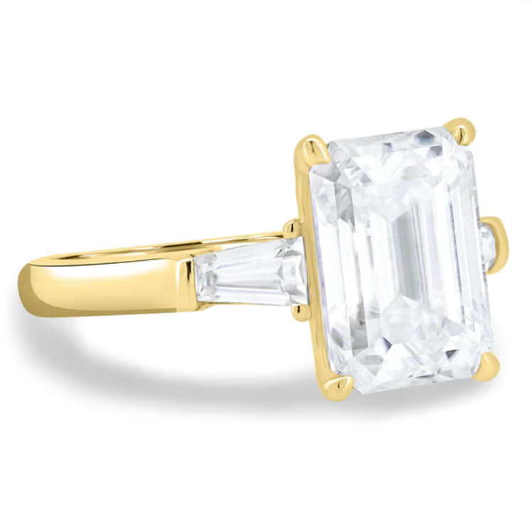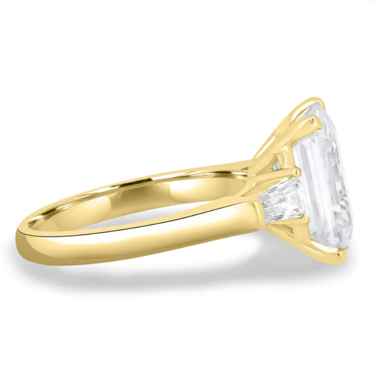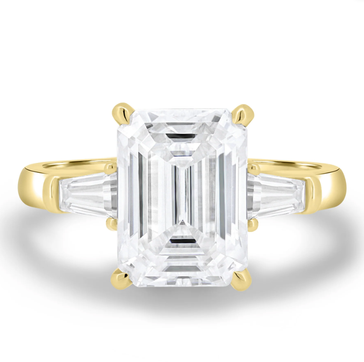 Introducing Brianna, a stunning 4.5ct emerald cut moissanite trilogy engagement ring with a solitaire band. Available in 2.3mm 9ct gold, or 18ct gold, this ring is the epitome of elegance and sophistication. The emerald-cut moissanite stones sparkle brilliantly and are sure to catch the eye of anyone who sees them.