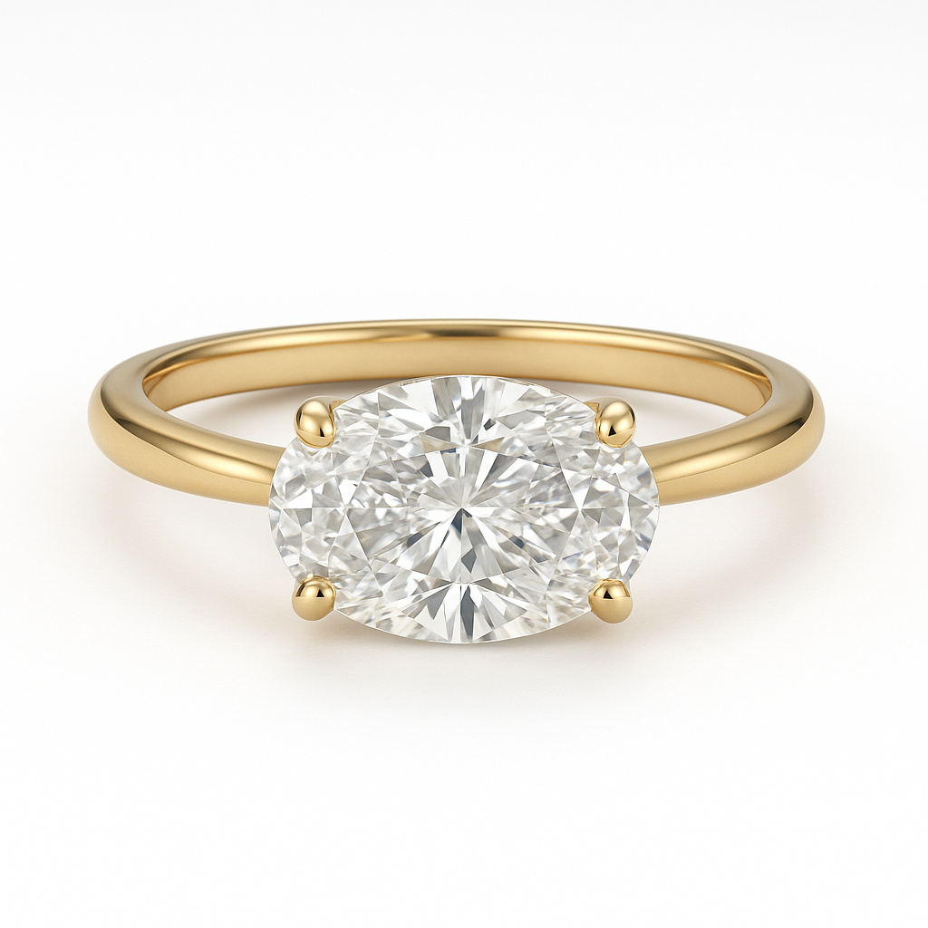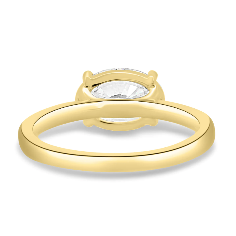 Introducing Kenia, the perfect engagement ring for your special someone. This stunning ring features a dazzling 2.5ct solitaire solitaire set in a 4 claw east west setting, sure to catch the eye of anyone who sees it. The delicate 1.8mm band is available in both Sterling Silver and 9K gold, making it a versatile choice for any style. Give the gift of Kenia and make your proposal unforgettable.
