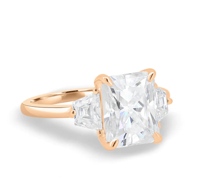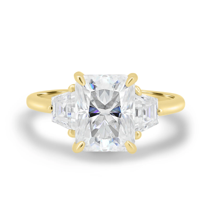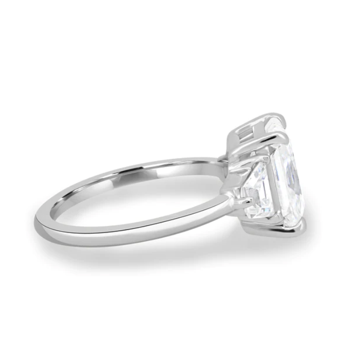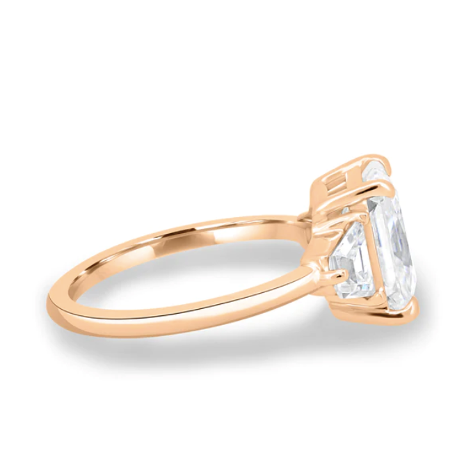 Introducing Julianna, the perfect engagement ring for those who love a touch of sophistication! Featuring a 4ct Radiant trilogy moissanite stone set on a solitaire band, this ring is the epitome of elegance. Available in your choice of 925 sterling silver, 9ct gold or 18ct gold with a slim 1.8mm band, Julianna is a stunning choice for any proposal.