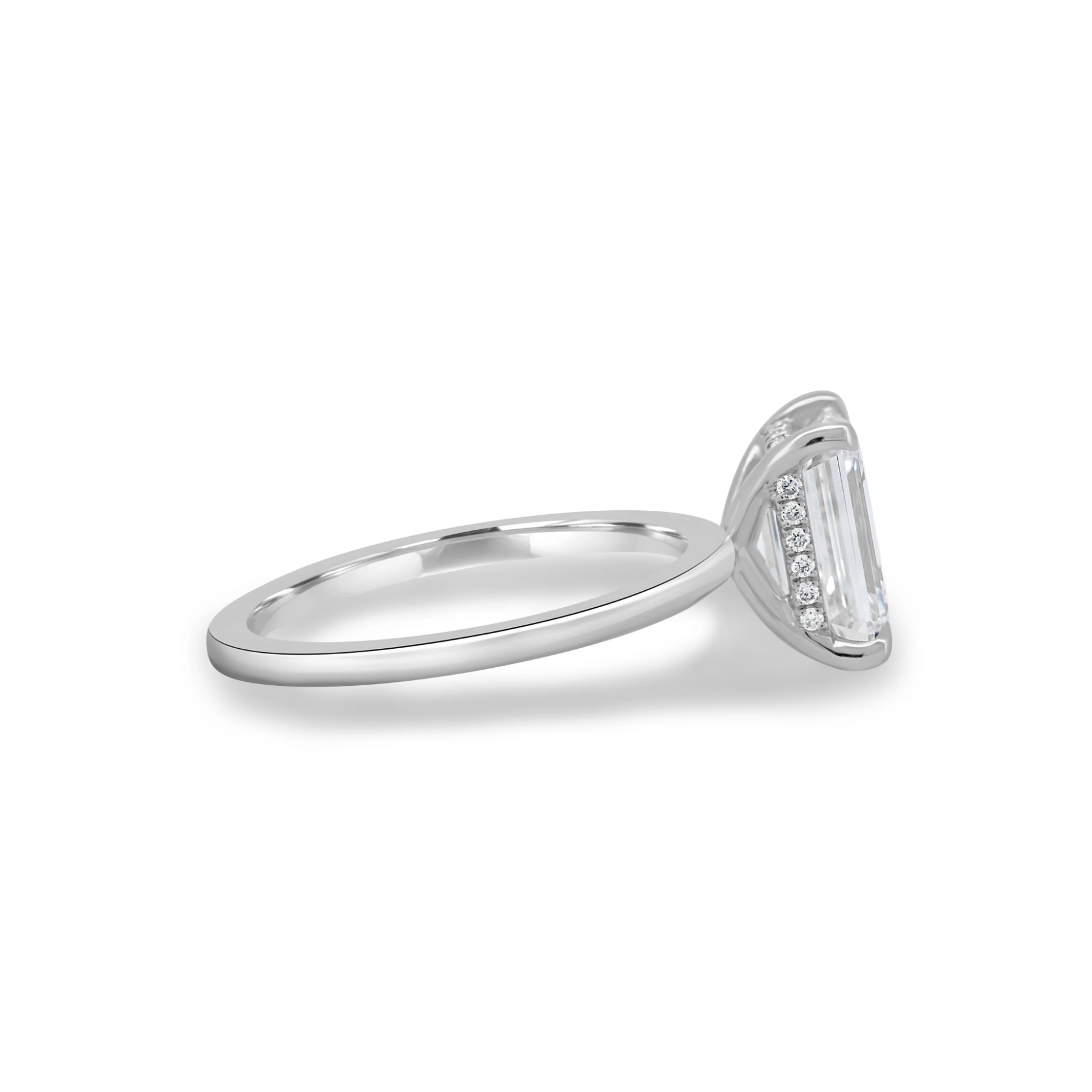 The centerpiece of this ring is a brilliant 1ct lab-created diamond, boasting an G-I color and VS clarity, ensuring a breathtaking sparkle that rivals natural diamonds. Surrounding the diamond is a stunning Moissanite hidden halo, adding an enchanting touch of brilliance that enhances the overall allure.