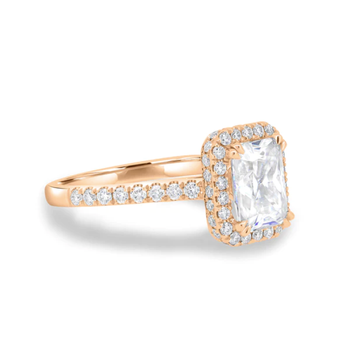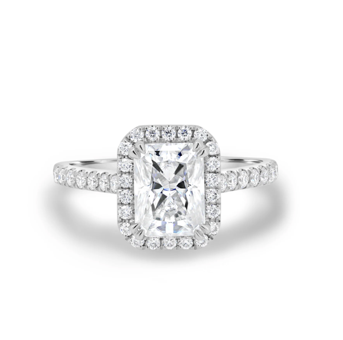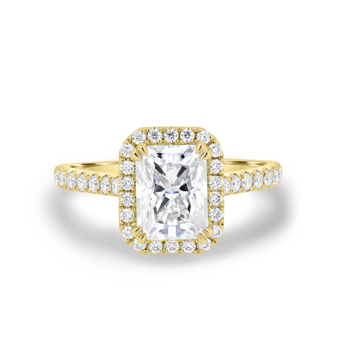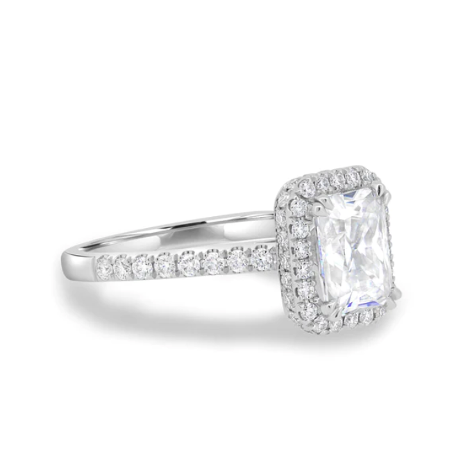Introducing Winessa, the perfect engagement ring for the modern bride. Featuring a stunning 1.9ct radiant moissanite stone, this ring is truly breathtaking. The pavé band and halo add a touch of glamour and sparkle, making it a true showstopper. Available in 925 sterling silver, 9ct gold, or 18ct gold, Winessa is a versatile ring that can suit any style. With a delicate 1.8mm band, it is both elegant and comfortable to wear. Give your love the ring of their dreams with Winessa.